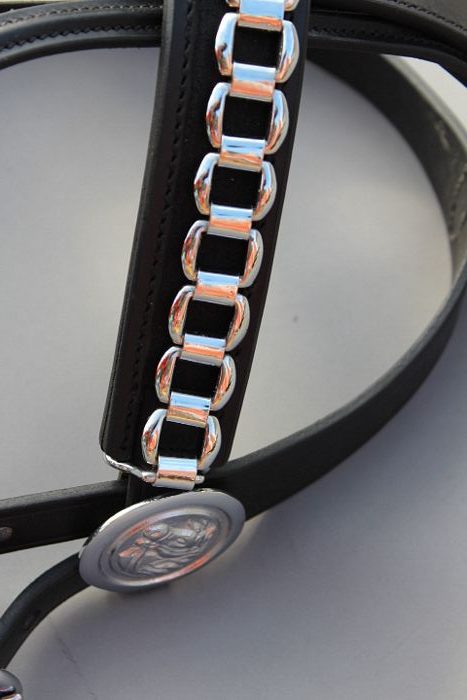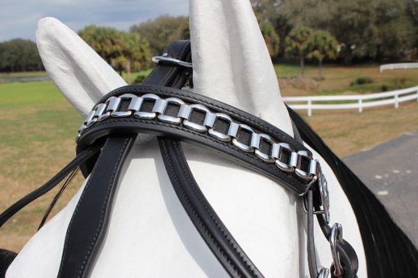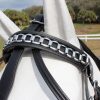 The Browband Friesian is designed to enhance the majestic look of Friesian horses while offering superior comfort and durability. Made from premium-quality materials, it ensures a secure and comfortable fit, preventing pressure or irritation during riding or driving. The elegant design highlights the natural beauty and presence of the Friesian breed, making it ideal for shows, parades, or everyday use. Built for both performance and appearance, this browband adds a touch of sophistication to any harness or bridle setup.